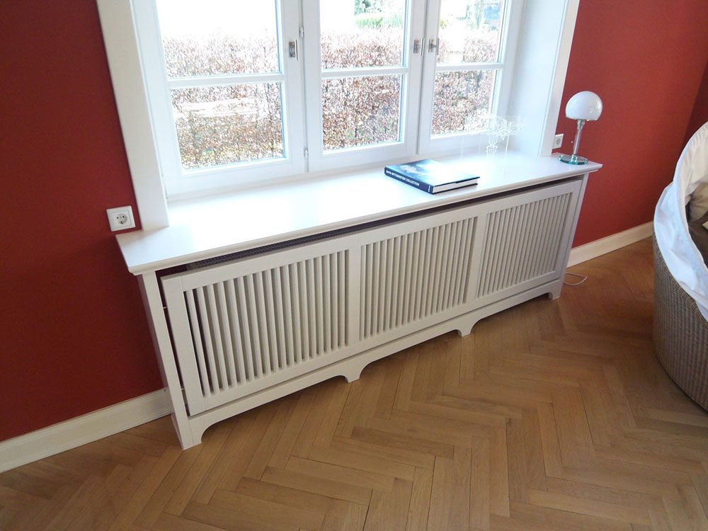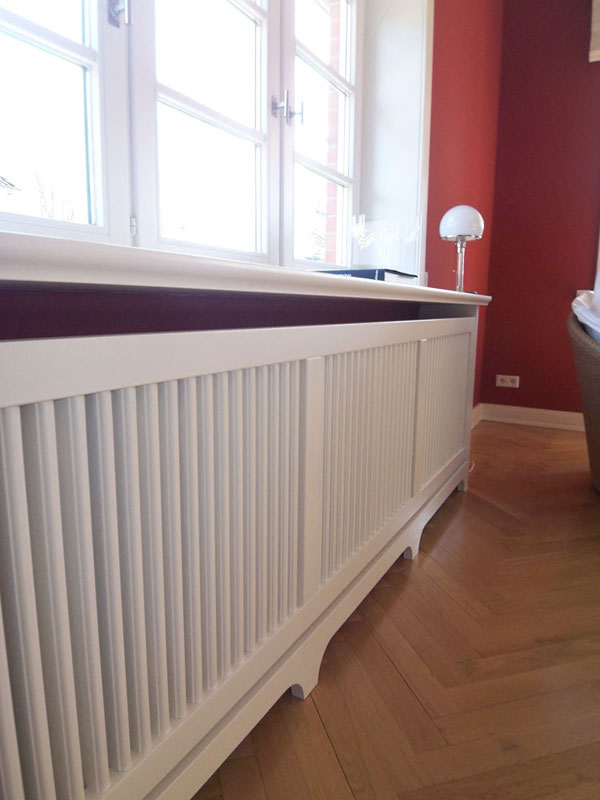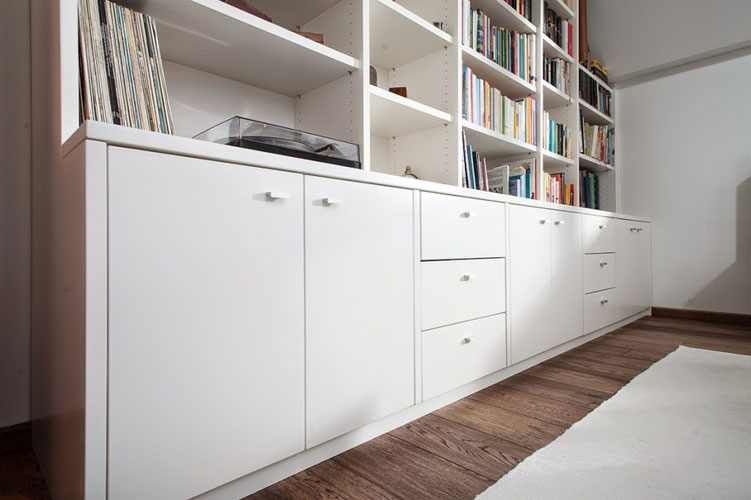 Zurückhaltende Einbauten, die den Raum prägen, ohne zu dominieren und auch noch jede menge Stellfläche mitbringen.